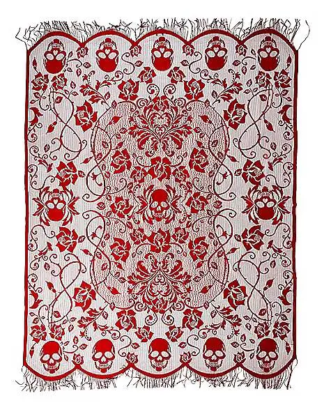 Add some flair to your Halloween feast with this hauntingly beautiful gothic tablecloth! This white tablecloth, available exclusively at Spirit Halloween, is patterned with red skulls and roses, making it the perfect combination of elegant and eerie.