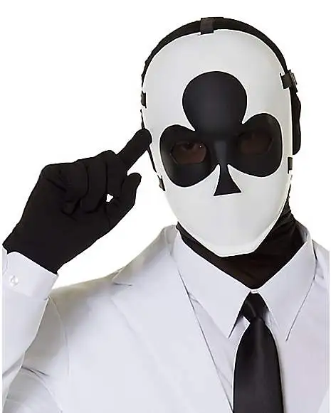 Pick a card, any card! This official Fortnite Wild Card Club Mask is the optimal gear for even the biggest of jobs! This mask is mostly white and features a large black club design right between the eyes. Good enough for even the finest of thieves, you’ll have no problem getting to the bag this Halloween.