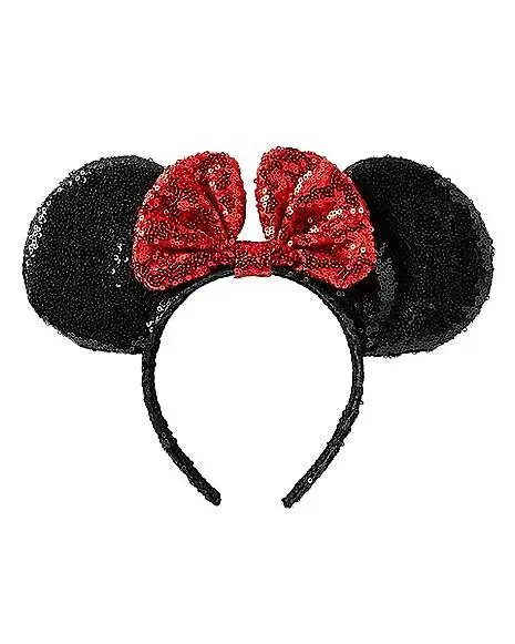 Be the sweetheart of Disney in the Minnie Sequin Headband. Features black sequin ears and red bow with polka dots resting on top of a black headband. Embrace Minnie Mouse and brings smiles to everyone you know!
